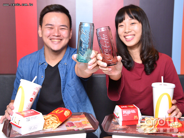 麥當勞與可口可樂公司的合作,可細數自2008年奧運主題「曲線杯」起,從此每年都推出專屬年度可樂杯,至今全台已累積送出近2,000萬個。今(2017)年雙品牌第10度合作,以可口可樂迷你罐為原型,以1:1比例打造「Coca-Cola巧罐杯」。不僅全程法國製造、直送台灣,更是全亞洲搶先首發,預期為門市帶來2位數來客數成長。